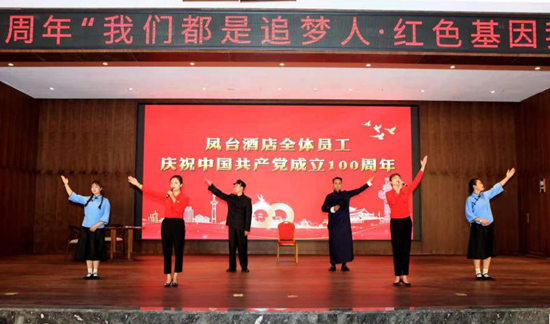 为隆重庆祝中国共产党建党成立100周年,6月25日下午,在广元市交通旅游投资集团主办,各旗下子公司联办的以“我们都是追梦人,红色基因我传承”为主题的汇演活动中,广元凤台国际酒店全体员工满怀赤诚,为党献礼!